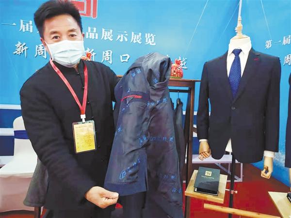 本报讯 量身定制,做工考究,一件件手工制作的西服让不少人重新认识服装的制作过程。在2020第一届周商大会开幕当天,记者见到了淮阳县第十三届政协常委、非物质文化遗产淮阳布老虎传承人、淮阳县工艺美术协会副主席雷德超。本次大会,他不仅带来了可爱的布老虎,还带来了以自己名字命名的手工西服。制作精良的手工西服像极了一件件艺术品,吸引了不少人前来咨询。