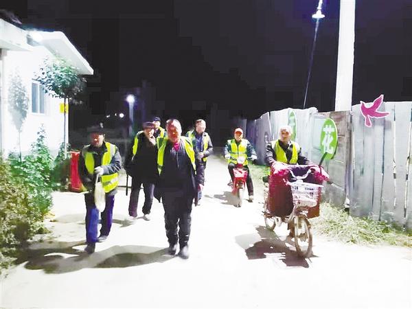 据了解,逊母口镇目前共成立39支夜间巡逻队,巡逻队成员由人大代表、村民辅警、村干部、党员、退伍老兵、志愿者等组成,形成了齐抓共管、群防群治的合力。巡逻队自10月初成立以来,不管风吹雨打,都坚持巡逻到深夜。目前,巡逻队共消除各类安全隐患20余起,发放各类宣传资料3000余份。②7