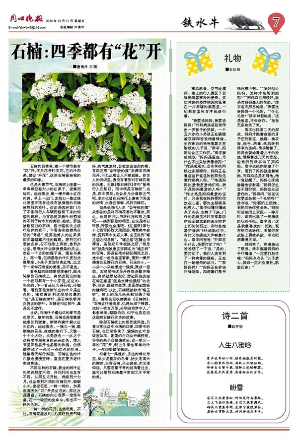 石楠的四季里,哪一个季节都有“花”开,不只花开时有花,它的叶和果,都会“开花”,这是石楠留给我的最深的印象。