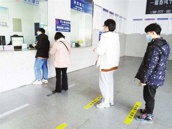 周口火车站客运车间副主任李瑞银提醒旅客,乘车时做好个人防护,进站前自觉佩戴好口罩,相互之间保持一米距离。周口火车站严格按照规定,每天对候车厅、旅客进出站通道以及站内垃圾桶进行全面消毒,确保旅客出行安全。②9