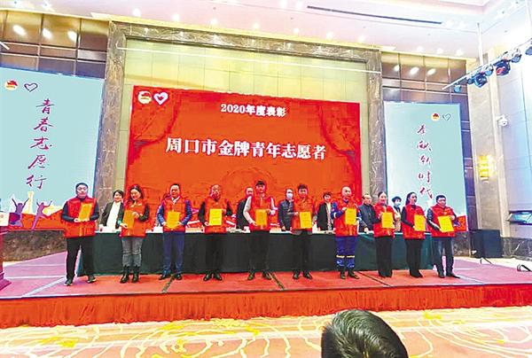 周口市文明办、共青团周口市委表彰了今年以来在周口市疫情防控、脱贫攻坚、抗洪救灾、环境保护、参与大型赛会等重大志愿服务项目与活动中表现突出的249名优秀青年志愿者个人和组织代表。其中,王勇等10人荣获“周口市金牌青年志愿者”称号;授予王国辉等10人“周口市青年志愿服务事业贡献奖”;授予王露冰等169人“周口市青年志愿者优秀个人奖”;授予周口市技师学院团委等60个组织“周口市青年志愿者优秀组织奖”。