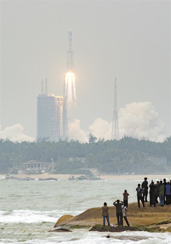 12月22日12时37分,我国自主研制的新型中型运载火箭长征八号首次飞行试验,在中国文昌航天发射场顺利实施,火箭飞行正常,试验取得圆满成功。新华社记者 周佳谊 摄