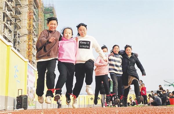 为健全学生体魄,弘扬拼搏向上的精神,增强集体主义情感,12月18日,周口经济开发区开来路小学举行冬季趣味运动会。图为三人四足比赛。记者 王俊祥 通讯员 王小震 摄