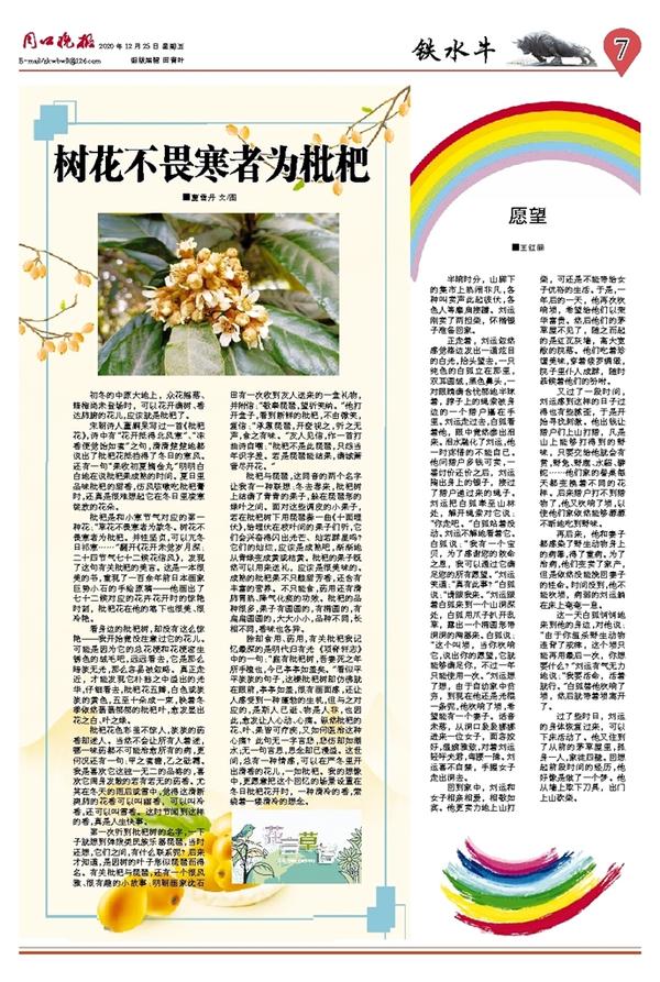 初冬的中原大地上,众花摇落、蜡梅尚未登场时,可以花开满树、香达肺腑的花儿,应该就是枇杷了。