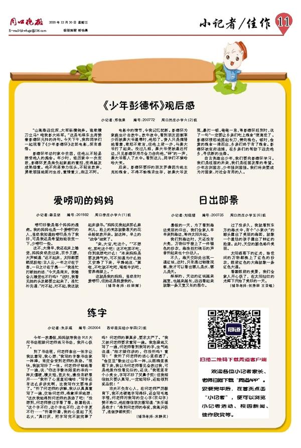 小记者:郑依果 编号:200772 周口闫庄小学六(2)班