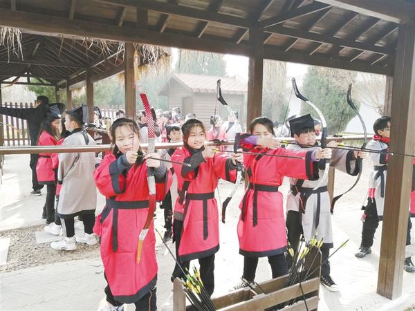 接着,师生们走进太清宫景区,在研学导师的引领下有序参观学习,并分组体验了射箭、投壶等项目。一名研学导师告诉记者,孩子们动静结合,在“玩”中寻求到问题的答案、感受到国学的魅力,对平时所学的国学知识有了更深的理解。