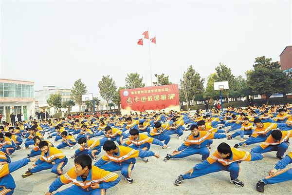 该校校长司东方介绍,在市武术协会帮助指导下,该校先后引进了少林连环拳、太极拳、八卦拳、长拳、少林通背拳、心意六合拳和规定套路拳,通过教学和训练,不仅培养了学生良好的心理素质和身体素质,还丰富活跃了学生的校园文化生活。