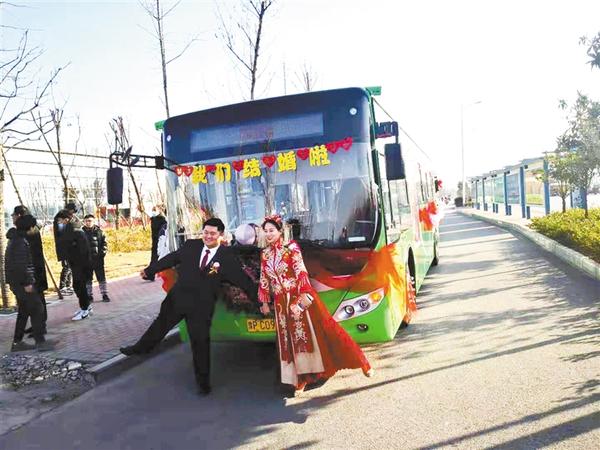 市公交一公司书记李彦军说:“买亚飞和裴丹阳都是公交人,用公交车作为婚车,是为了支持绿色出行,积极响应政府节能减排政策。两位新人在工作中相识相知,互帮互助,在平凡的工作中,诠释了为市民服务的岗位精神。”③7