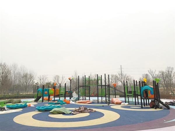 元旦前夕,记者在市经济开发区朝阳路铁路公园内看到,顶着狂风严寒,这处儿童空间正在进行最后的收尾工作,几名工人聚精会神地安装儿童大型户外滑滑梯(如图)。环顾四周,桔、粉、紫、黄、绿相间的“山坡”和“洼地“,色彩明艳的塑胶弹性地面,无论是游乐设施造型、景观小品打造,都充满了童趣。据现场人员介绍,工程接近尾声,还有少部分儿童娱乐设施要等到货后安装,目前基本达到对外开放条件。