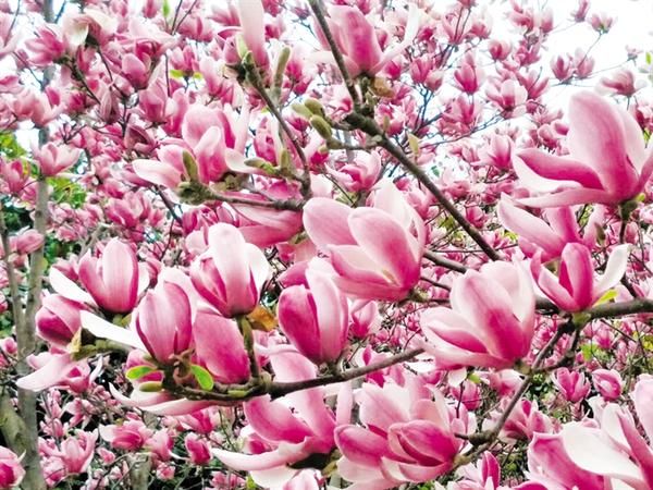 木笔花挂满枝头时,会用大片的紫色描绘出一片祥瑞之气。喜欢远远地映着依依的垂柳看它,也喜欢对着蓝天望它——喜欢它枝桠密集地画出热闹,也喜欢它旁逸斜出地写出疏离。不管哪一种,都美得让人心动,美得让人害怕错过,害怕早一点儿或是晚一点儿,都赶不上它最好的时光。花开得有多美,落得就有多惊心。冬日里漫长的蕴蓄,似乎只为短暂的“纷纷开且落”。好在,伴随着花落,新叶开始萌生,让人看到寂灭的同时,也看到新生。