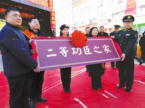 “这么冷的天没想到军地领导上门送喜报,还制作了功臣之家的光荣牌匾……”看到送喜报“队伍”的到来,赵金豹激动地说。