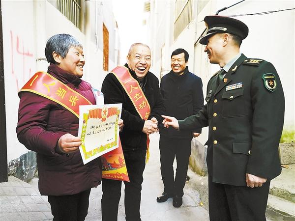 韩飞是武警某部2020年底刚退伍的四期士官,服役期间因表现突出荣立三等功。得知军地领导送喜报的消息后,他早早来到小区门口迎接,韩飞的妻子也特意从单位请假回到家中见证喜报进家门的这一刻。看着家人接过喜报和奖章时的喜悦和自豪,韩飞激动地说:“虽然已经脱下军装,但退伍不褪色,以后我一定要更加努力干好本职,不辜负家人的期盼,不辜负组织和领导的信任,以更加优异的成绩回报部队的培养。”