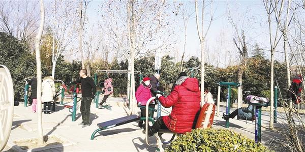 中心城区的街头游园日趋增多,健身器材分布其中。1月13日,市民在街边小游园内的健身器材上锻炼。记者 马月红 摄