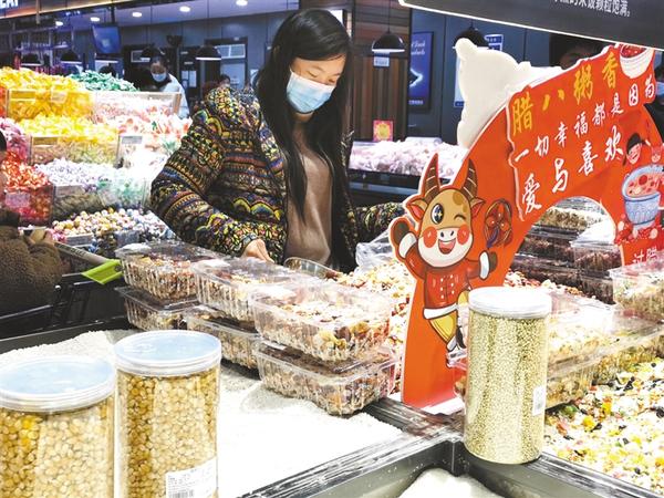 1月17日,市民在超市选购制作腊八粥的食材。腊八节前,市场上各种制作腊八粥的食材已开始热销。1月19日,记者在超市看到,不少市民在挑选、购买制作腊八粥的各种食材。