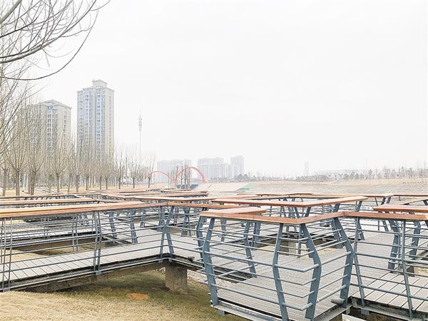 游览至流沙河河道边的玉盘落珠景观段,约160年树龄的市树——国槐屹立在广场上,向东走至亲水平台,站在亲水平台上可近距离观赏河面风景。在河道旁的木栏小道,一位市民正带着孩子游玩,“这里好漂亮、好好玩。”游玩的孩子嬉笑着说。“不仅有广场、亲水平台,前面还有紫竹林、塑胶跑道等休闲娱乐好去处。玉盘落珠景观段目前也处于管养阶段,春节期间应该会完全开放。”董帅兵说。