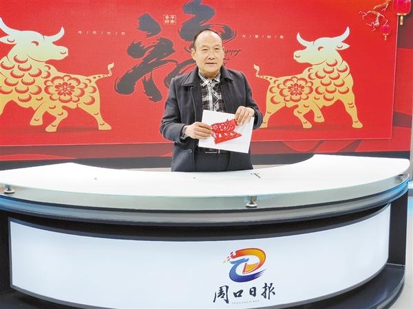 一张正方形红纸,经多次对折后,两剪刀剪出一个红双“喜”字。1月29日,在周口日报融媒体演播室,河南省民间艺术学会会员、剪纸艺术委员会理事、“非遗”传承人王银生亮出两剪子剪出一个红双喜的绝活。