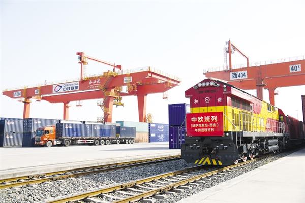 2月3日,满载年货的中欧班列抵达中国铁路西安局集团有限公司新筑车站。 当日,满载着49车“洋年货”的X9020次中欧班列抵达中国铁路西安局集团有限公司新筑车站,这是2021年从哈萨克斯坦开出后抵达西安的首趟中欧班列(西安)年货返程班列。这趟班列装载有面粉、食用油、蜂蜜、糖果等丰富的年货产品。 新华社记者 李一博 摄