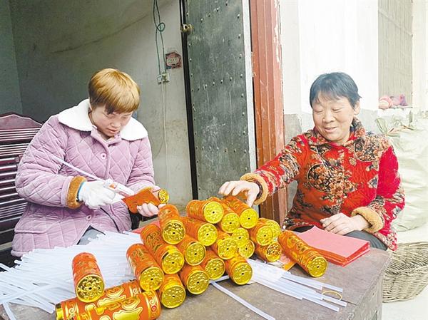 “组装电子鞭炮能挣点零花钱,比闲着强,俺粘炮布好几个月了,说着笑着就把活儿干完了。”70多岁的陈英(化名)笑着说,刚开始是她一个人干,后来她丈夫也加入了粘炮布的队伍,“俺儿媳妇前几天刚从外地打工回来,她也帮着我粘,俺们3个人一天能粘2000多个炮布。”