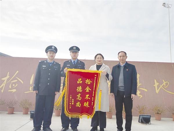 本报讯 “钱包里一分钱没少、一张卡没丢,手机也找到了,真的太感谢你们了!”2月7日上午,市民张明慧将一面写有“拾金不昧 品德高尚”字样的锦旗送到周口市纪检监察宣教中心,并对该中心保安人员康明杰、张文文2名同志的高尚品德给予了高度赞扬。