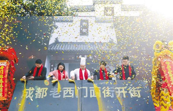2月8日,在成都市老西门面街,5名代表启动开街仪式。
