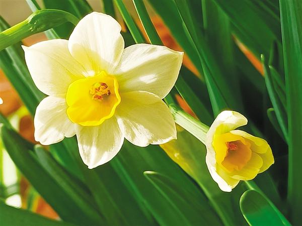 水仙“其花莹韵,其香清幽”,的确有值得自恋的形与神,但我却从不曾觉得它会自恋——它的要求少得可怜,只要浅浅一钵清水,这个遇水成仙的小仙子,便已生机盎然。不自恋的它倒是招惹得历代文人墨客为它写下不少佳句:“岁华摇落物萧然,一种清风绝可怜”、“得水能仙天与奇,寒香寂寞动冰肌”、“得水成仙最风味,与梅为弟各芬香”……句句都在写水仙的风与味、雅与清。难怪中国人把水仙、兰花、菊花、菖蒲列为花中“四雅”;又把水仙与梅花、茶花、迎春花并列为雪中“四友”。