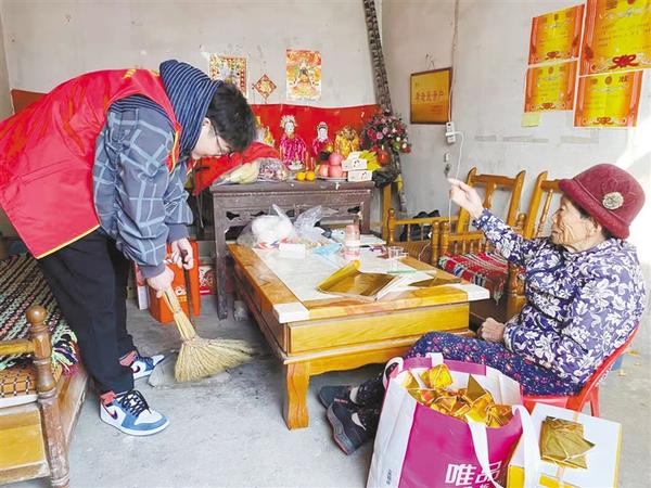 “看到村里的孩子们有所进步,所有的付出都值了。”说起自己的辛劳,张修成轻描淡写一语带过。除了辅导留守儿童的课业,张修成还常常帮村里的王奶奶做家务、打扫卫生(如图)。“大孙子,这点活,奶奶还能干,你能来看奶奶,陪奶奶说说话,我就很高兴了。”谈起张修成,满脸皱纹的王奶奶笑得脸上像开了一朵花。