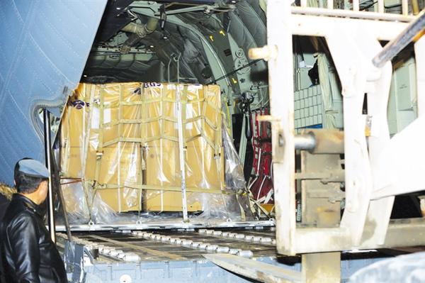 3月2日,工作人员在伊拉克巴格达的空军基地从飞机上卸载中国新冠疫苗。 中国援助伊拉克的首批国产新冠疫苗2日运抵巴格达。新华社发
