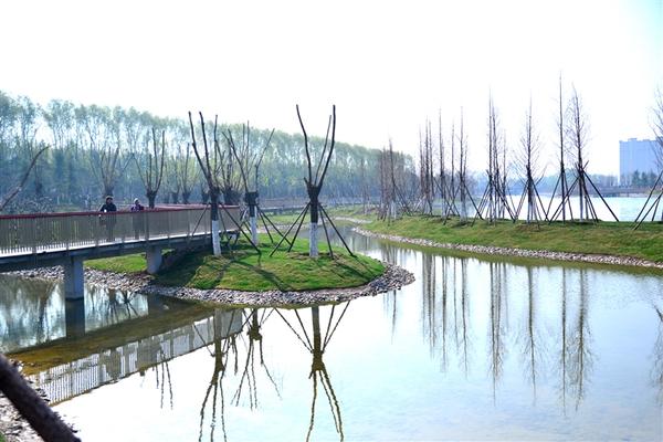 3月9日,鱼翔湖湿地公园曲廊环绕、新树挺立,水面波光粼粼,市民漫步其中,感受水清岸绿、鱼翔浅底的美景。鱼翔湖是中心城区水系改造工程之一,位于周口大道北段。改建后的鱼翔湖,是一个以水净化、水景观、水科普为主的湿地公园,让市民尽享城市生态之美。②8记者 孙安平 摄