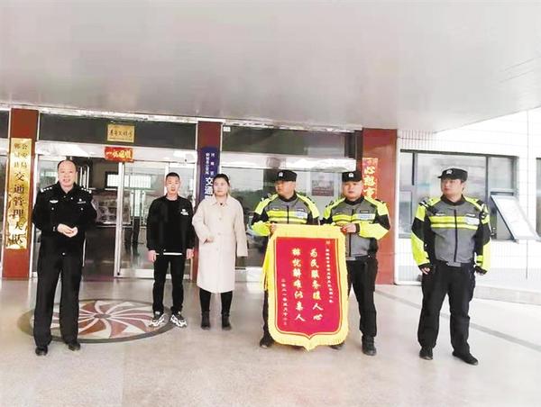 3月16日8时,郸城县新城区响盘庄行政村张柿园村村民张小涛夫妇,将一面锦旗送到了郸城县交警大队,感谢交警大队铁骑中队护送他们迷路的孩子回家。