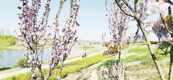 3月24日,市民在沙颍河沿岸游玩,两岸的桃花、海棠、石楠、樱桃花竞相绽放,风景美如画。自从沙颍河改造后,沿河步道蜿蜒曲折,微地形高低错落,两侧栽有香樟、槐树、雪松、石楠等乔灌木,碧桃、樱花等彩色树种夹杂其间,营造出两岸飘渺悠扬的意境。