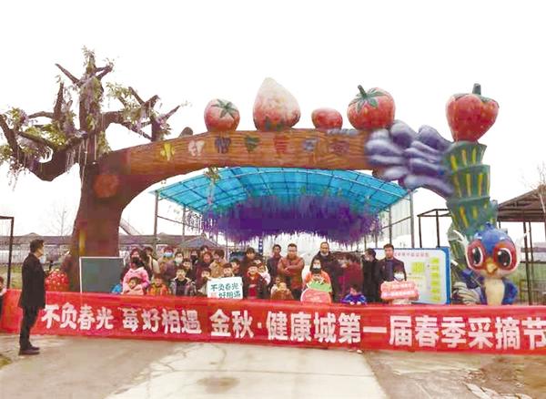 3月21日,市民在西华县小红帽草莓乐园合影留念。为了丰富市民的业余生活,3月20日至21日,金秋健康城在西华县小红帽草莓乐园举办了“不负春光,‘莓’好相遇”首届草莓采摘活动,新鲜的草莓和金秋健康城工作人员优质的服务受到了市民一致称赞。记者 赵世全 摄