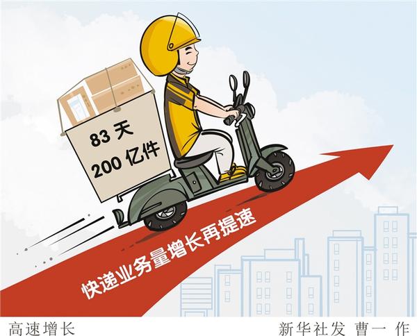 值得注意的是,今年快递业务量突破200亿件用时仅83天,比2020年提前了45天,又一次刷新了我国快递业发展纪录。新华社发 曹一 作