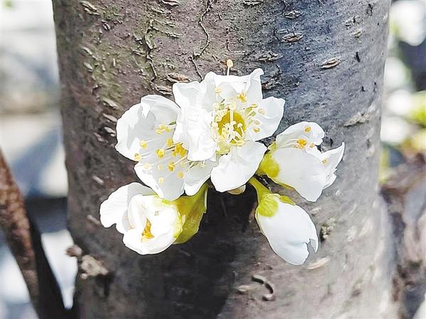 特别偏爱开在树干上的李花,那画面特别让人心动:纤柔与坚硬、明亮与暗淡、精致与朴拙、新生与沧桑、热闹与孤单……自然而然地纠缠在一起,完美地糅合在一起。