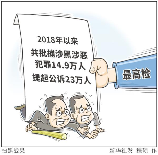 最高人民检察院3月29日发布检察机关参与扫黑除恶专项斗争相关数据显示,2018年以来,检察机关共批准逮捕涉黑涉恶犯罪嫌疑人14.9万人,提起公诉23万人,其中起诉组织、领导、参加黑社会性质组织犯罪5.4万人,是前三年的11.9倍。 新华社发 程硕 作