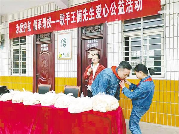 当日下午,“为爱护航、情系母校”爱心活动在太康县马厂镇回族小学校园内举行。活动中,从马厂镇回族小学毕业的歌手王楠为该校380余名师生送上了压缩馍,还演唱了《最亲的人》《新闯码头》等歌曲。