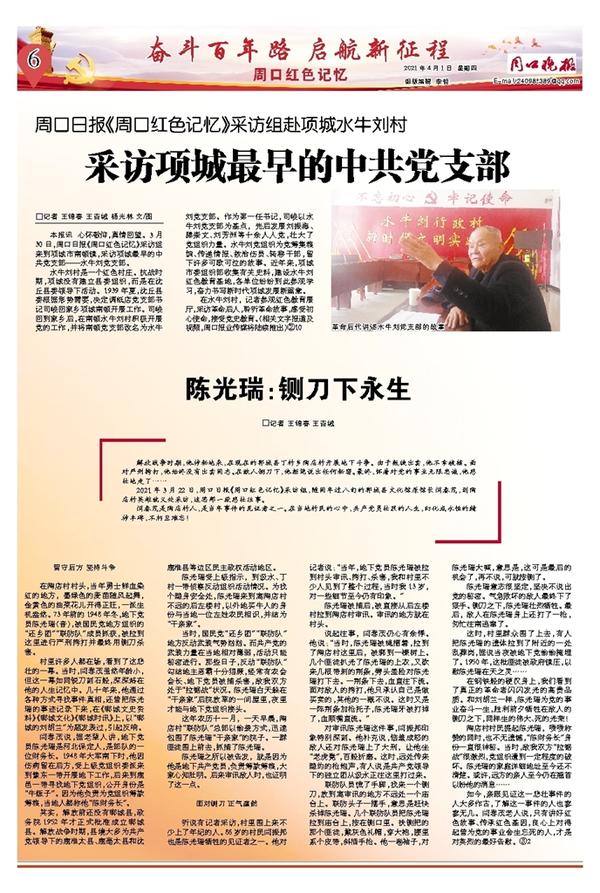 2021年3月22日,周口日报《周口红色记忆》采访组,随同年过八旬的郸城县文化馆原馆长闫春茂,到陶店村英雄就义处采访,追思那一段悲壮往事。