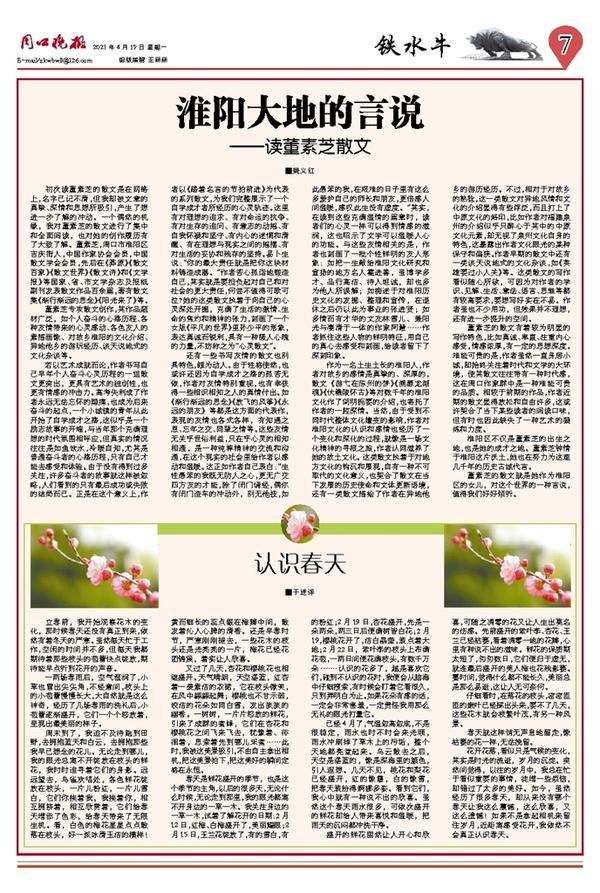 董素芝的散文就是她作为淮阳区的女儿,对这个世界的一种言说,值得我们好好倾听。