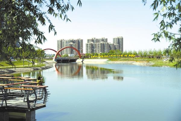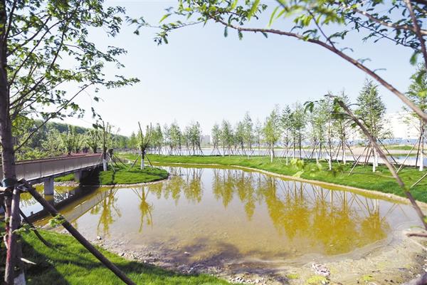 与城区的各个游园相比,此处稍显僻静,翠阴蒙密,再加上流水淙淙,更有风物清幽之感。闲暇之时,三三两两的居民结伴散步,大自然的静谧与灵动在这里相交相融,让人心旷神怡。