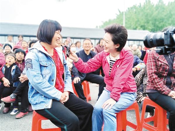 4月24日,村民王晓艳接受央视主持人海霞采访。当日,在西华县迟营镇孙庄村巩固拓展脱贫攻坚成果与乡村振兴发展大会上,国务院扶贫办形象大使海霞来到大会现场,作为委托代表为孙庄村群众进行乡村振兴基金首次分红。