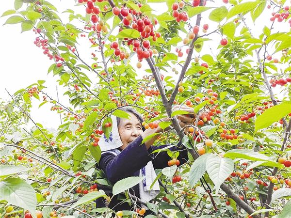 樱桃林深处,一位摘樱桃的老奶奶吸引了记者的注意。只见老奶奶手脚麻利,摘得飞快,不一会儿旁边的篮子就装满了樱桃。“奶奶好!您今年高寿呀?”“闺女,我86啦。”老奶奶声音洪亮,耳聪目明。交谈中得知,老奶奶名叫胡芝荣,是名老党员,年轻时当过妇女队长。“你看这樱桃长得多好!我想起了以前的那个时候没饭吃,别说樱桃了,树叶子、树皮都吃光了!”老奶奶红了眼眶,她用手揉了揉,接着说,“现在党的政策好,在家门口就能挣钱,来我们这儿旅游的人越来越多,日子也越来越好!”