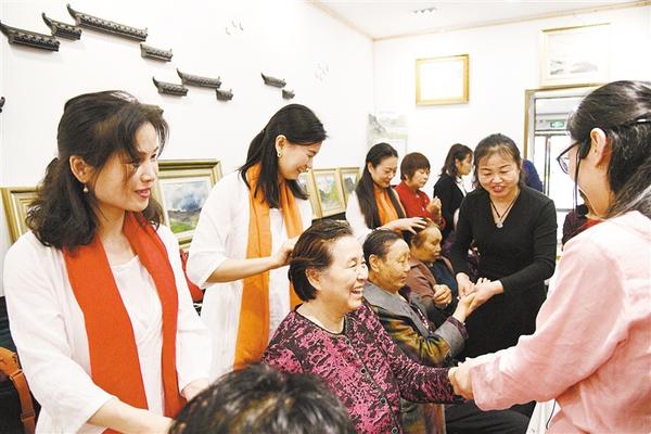5月5日上午,子女们为自己的母亲进行头部和手部按摩。母亲节来临之际,芸雅读书社在华威学堂举办了“遇见最美的自己”孝心表达活动,平时忙碌的子女利用假期的闲暇时光,相聚在这里,通过为母亲按摩、梳头、送花等方式,感恩母亲的养育之情,并传承我们中华民族的传统孝道。来自市中心城区的15个家庭参加了这次母亲节孝心表达活动。②9记者 梁照曾 摄