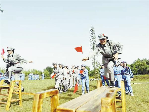 近日,周口市实验幼儿园开展“重温红色记忆 礼赞建党百年”红色主题运动会,百余名教职工身着红军军服,重温红色记忆。别开生面的红色主题户外活动,不仅丰富了广大教师的文化生活,增强了教师们的凝聚力,缓解了工作压力,更让他们受到红色文化的熏陶,为争做新时代好教师保持不竭的精神动力。记者 王辛泉 摄