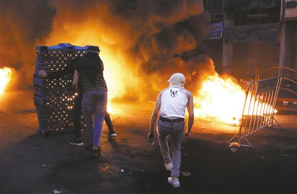 当地时间5月15日,巴勒斯坦人在约旦河西岸城市希伯伦同以色列士兵冲突。