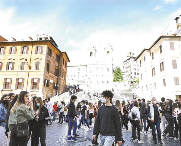 当地时间5月15日,游客在意大利首都罗马的西班牙广场上游览。