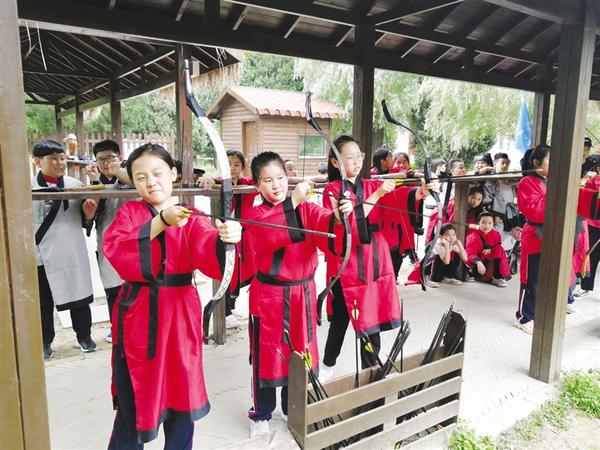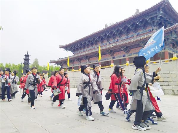 太清宫初名为老子庙,是老子诞生地、道家之源、河南省研学旅游示范基地。来到老子塑像前,全体师生怀着对圣哲老子的崇敬之心,参与了庄严、神圣的“三拜礼”活动。接下来,孝道文化、考古发掘、古代射箭、手工香包、丛林穿越……一项项体验让孩子们感受到别开生面的课堂风格。