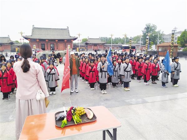 本报讯 孔子向老子问礼的故事是历史上的一段佳话,让人感觉春风拂面,心向往之。5月13日,川汇区奔腾小学100余位学子赶赴老子诞生地鹿邑县太清宫景区,开展“追溯文化之源,探寻老子故里”研学实践活动,身临其境了解千古经典《道德经》,增强文化自信。