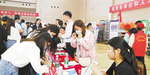 本报讯 5月19日,2021年大中城市联合招聘周口高校毕业生春季专场活动在周口职业技术学院开元校区举行,200多家企业携7000多个岗位进场招贤纳士,吸引了众多高校毕业生前来求职应聘。