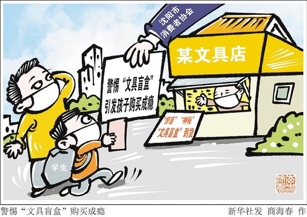 盲盒类产品如今在人们生活中出现的频率越来越高。记者近日采访发现,印着“惊喜”“神秘”字样的“文具盲盒”正悄然兴起,让很多未成年人沉迷其中。“六一”国际儿童节将至,沈阳市消费者协会提醒,“文具盲盒”等产品易诱导孩子产生赌博心态,家长要注意引导,避免对孩子成长造成不良影响。新华社发 商海春 作