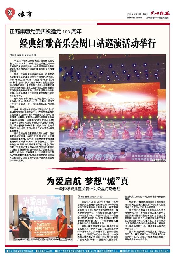 本报讯 5月29日上午8时许,一峰生活地产副总经理朱明杰带领周口一峰梦想城员工驱车前往商水县汤庄乡,将在那里生活的15个孩子和两位生活老师接到一峰梦想城营销中心,与天虹困境儿童关爱中心的志愿者一起,陪孩子们度过了一段充实、快乐的美好时光。此次活动标志着“为爱启航 梦想‘城’真”——一峰梦想城儿童关爱计划公益行动正式启动。