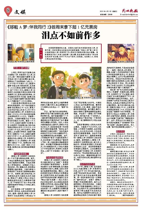 还是爱哭爱撒娇的大雄,还是对大雄无条件宠溺的哆啦A梦,还是不顾一切时空理论为所欲为的任意穿越梗,“哆啦A梦”第二部3D大电影《哆啦A梦:伴我同行2》上周末正式登陆中国内地大银幕。虽然票房远不如5年前上映的第一部火爆,但这部续作仍然以“没出息也没关系”的主题,击中了不少当下成年人的软肋。论抚慰人心,哆啦A梦这次依旧没有输。